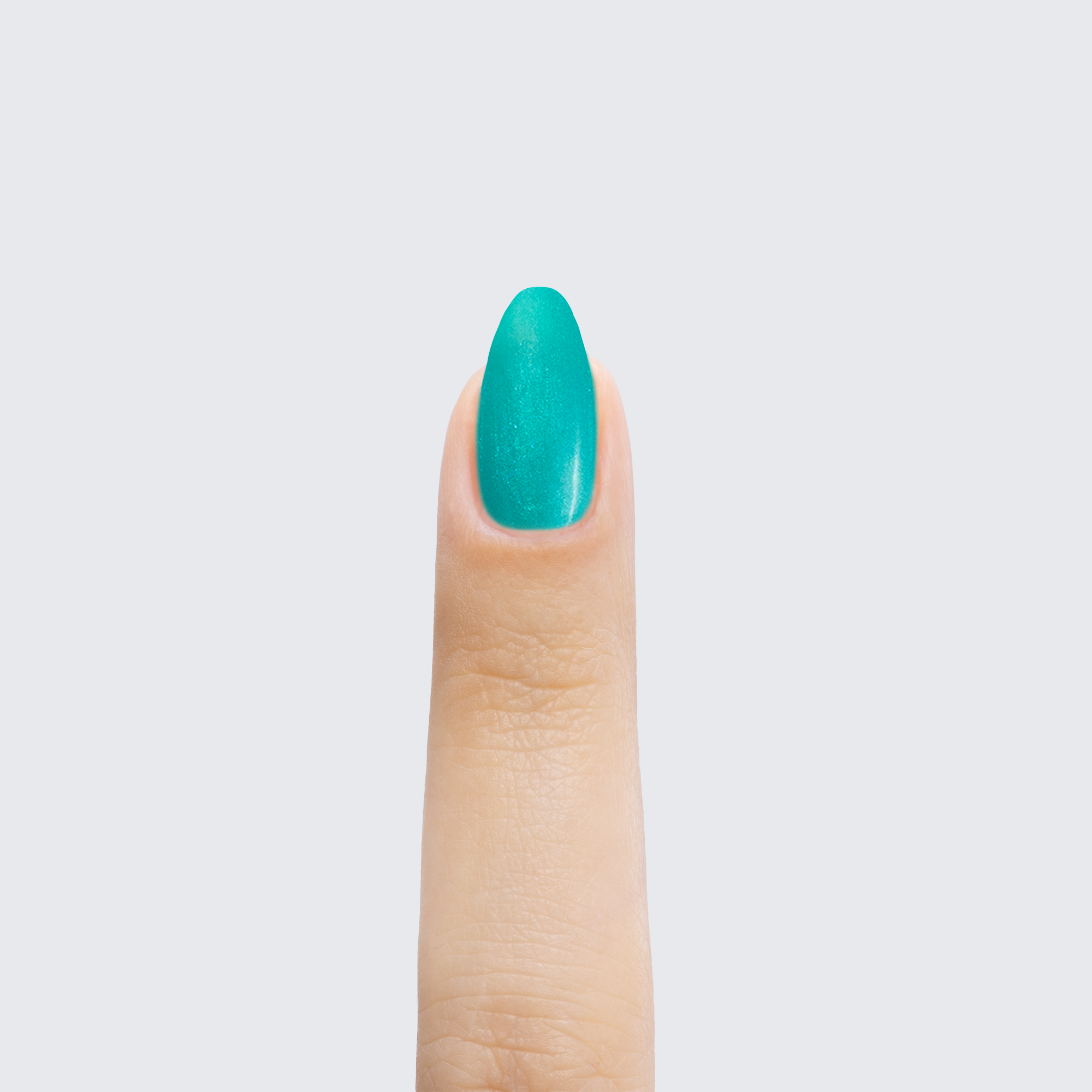 There’s never a dull moment with the aqua sheen of this bright teal polish.